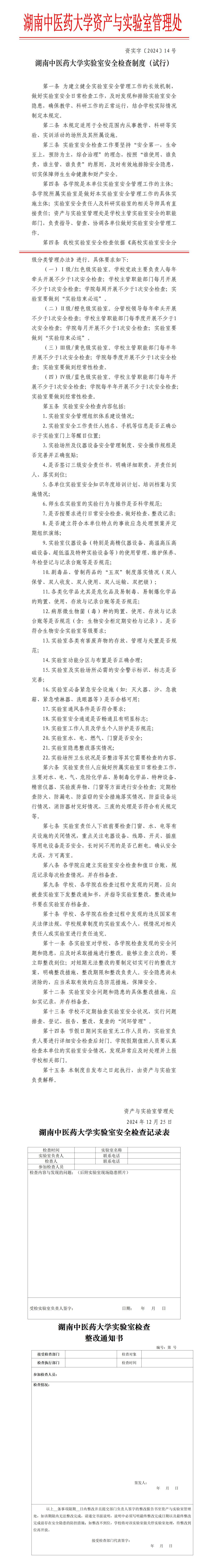 湖南中医药大学实验室安全检查制度(试行)资实字[2024]14号